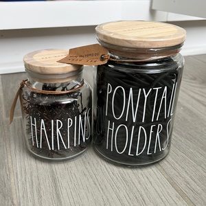 Rae Dunn Set Of 2 Black Hair Ties Bobby Pins Jars With Lids New Ebay